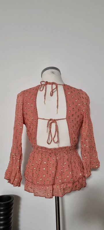 Blouse corail, dos nu, taille L, en très bon état.