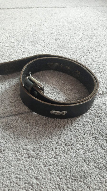 Ceinture gil holsters taille 85. En cuir très épais mais reste souple.
