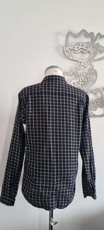 Chemise à carreaux noire et grise , 2 poches plaquées, taille S, en très bon état.