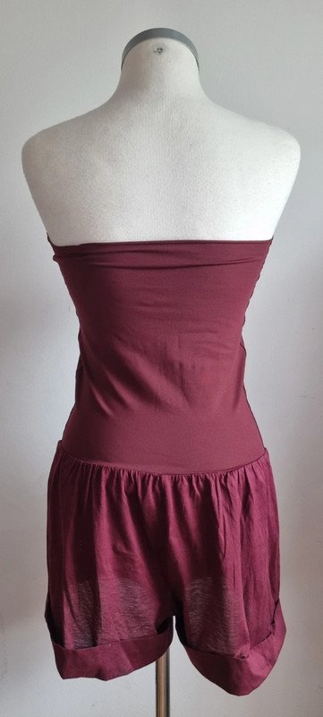 Combishort bustier, couleur bordeaux, bi-matière, coton en bas et polyamide en haut. Taille 2, en excellent état.