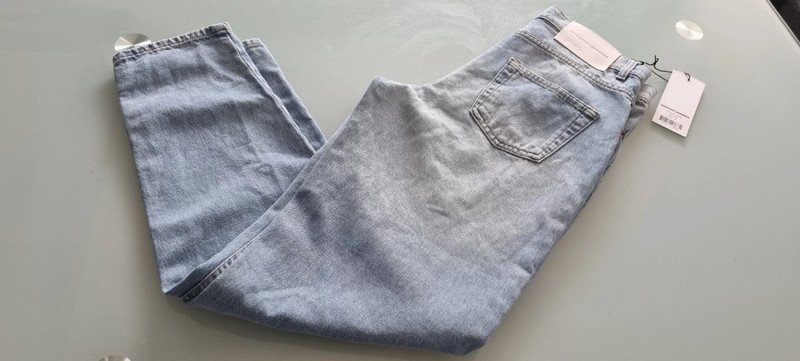 Jean style boyfriend slim à coupe courte, léger délavage et un effet vieilli, ce jean est taille basse et coupe large, légèrement plus ample au niveau des hanches. 100% coton