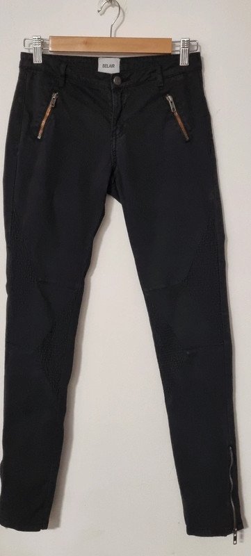 Jean noir slim, léger délavage, zippé aux poches et au niveau des chevilles. Taille 36, en bon état.
