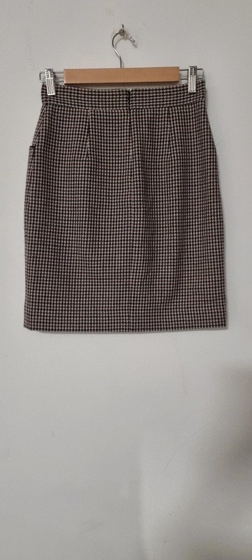 Jupe crayon, motif pied de poule en jacquard, modèle Jasali. 2 poches italiennes, fermeture zippée derrière. Taille 36, en excellent état.