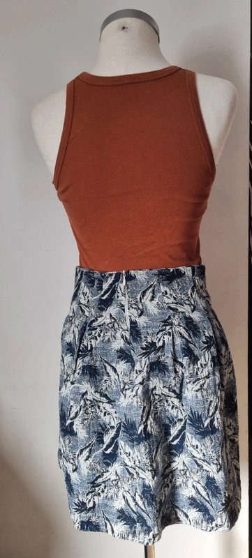 Jupe patineuse, à motif, zippée dans le dos, taille haute, taille S, en très bon état.