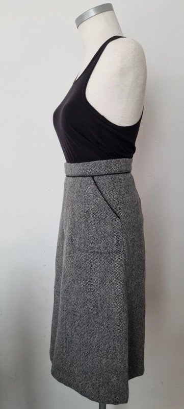 Jupe grise, modèle Gladys, taille haute, 2 poches latérales, taille 34, en très bon état.