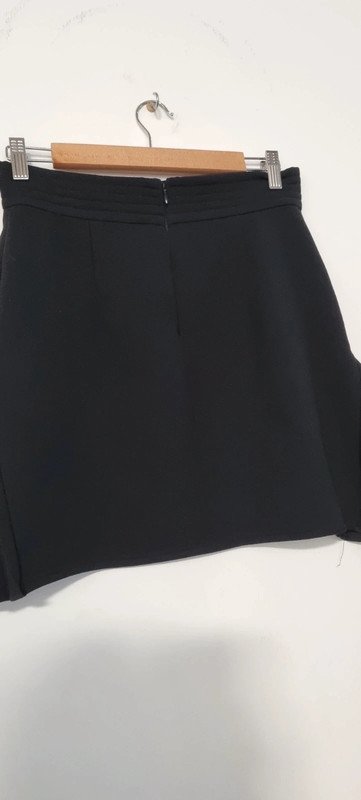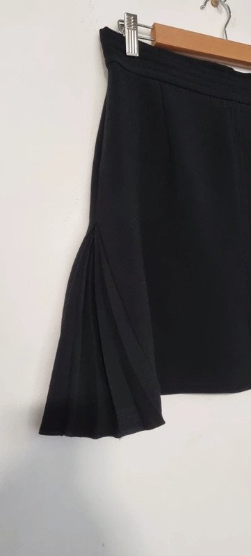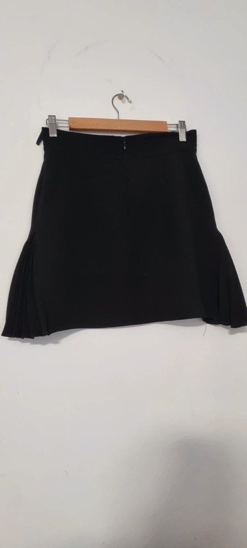 Jupe courte noire, plissée dans le bas de chaque côté de la jupe. Taille 38 en excellent état.
