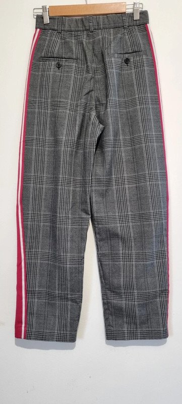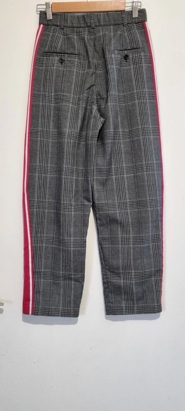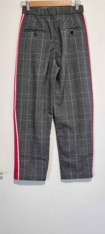 Pantalon à pinces, à carreaux gris, avec poches latérales, taille 36, en très bon état
