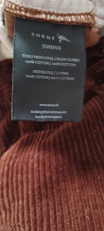 Pantalon en velours côtelé marron, modèle Johno, taille 38, en très bon état.