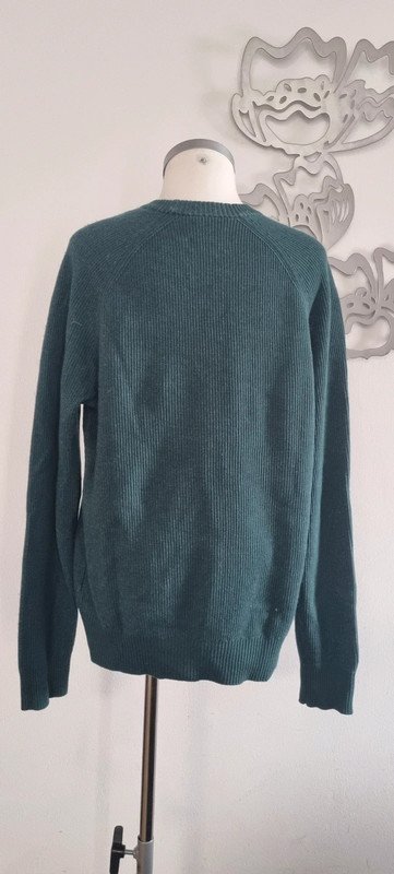 Pull bleu, ras de cou, vert, taille M, en très bon état.