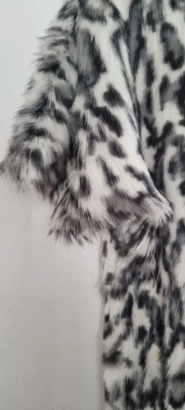 Pull imprimé animal, en fausse fourrure, manches courtes, taille M, en excellent état.