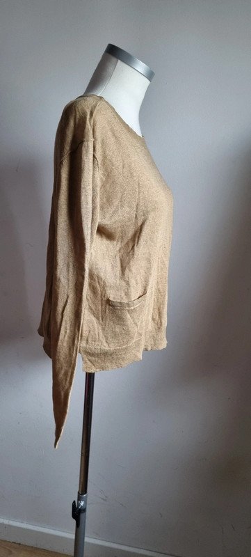 Pull en lin kaki, patte de boutonnage sur l’épaule, 2 poches devant, taille XS, neuf.