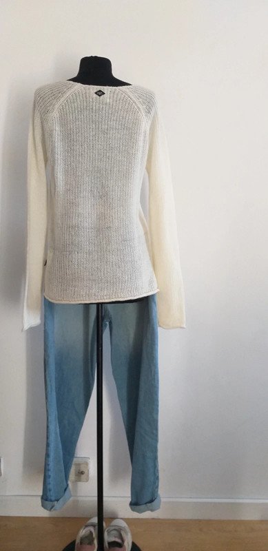 Pull blanc cassé, style déchiré, taille L. Excellent état.