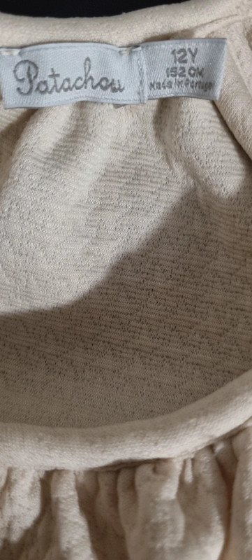 Robe Beige, manches volantés, taille 12 ans, en excellent état.