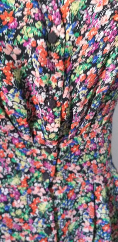 Robe fleuri Sandro, courte, se boutonne devant de haut en bas, avec une ceinture à nouer, doublure noire à l’intérieur, taille 1, excellent état.