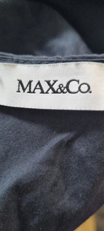 Robe MAX & CO, avec ceinture, marine, taille 38 en excellent état. Prix d’origine boutique : 350 €.