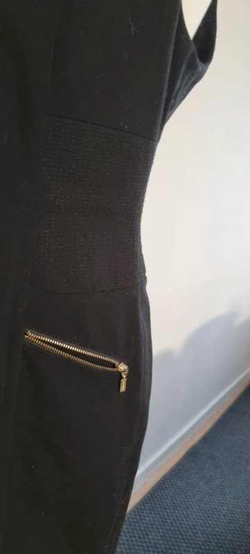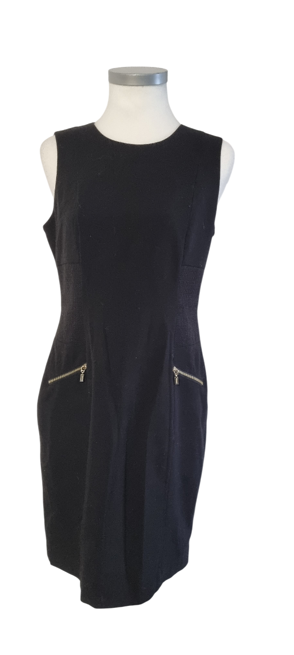 Robe noire, cintrée, zippée dans le dos, 2 poches zippées, taille 40, en excellent état
