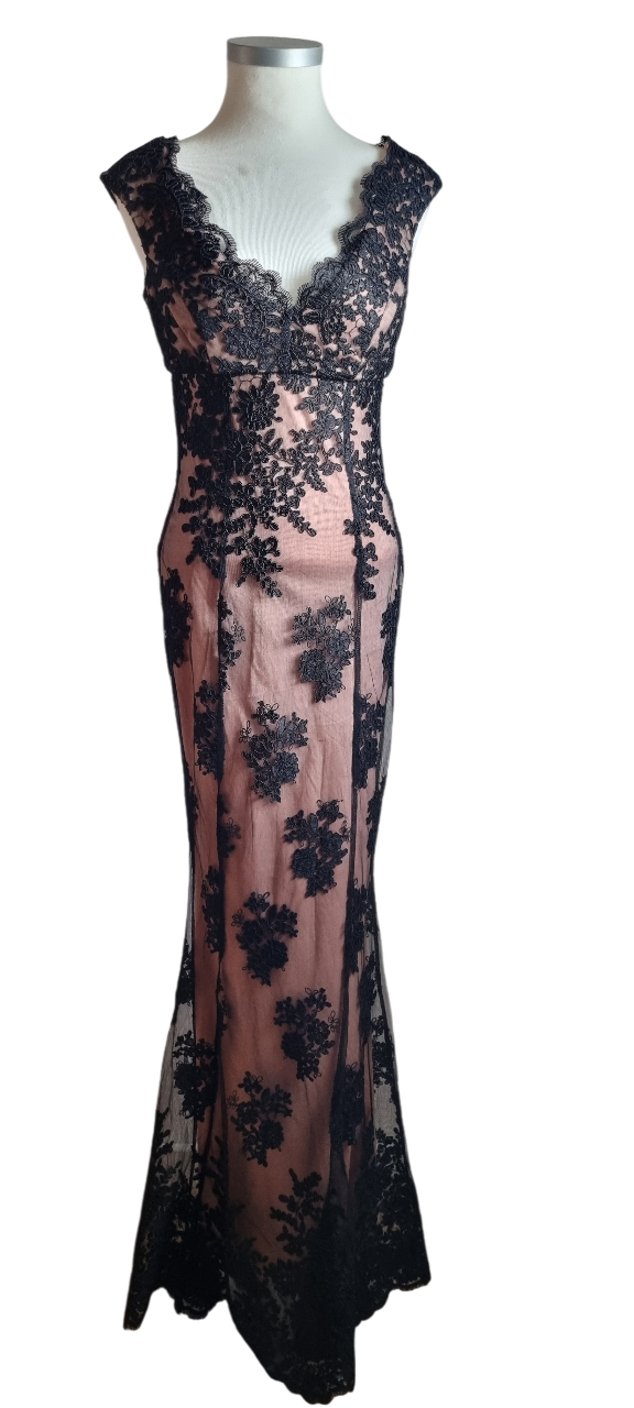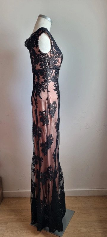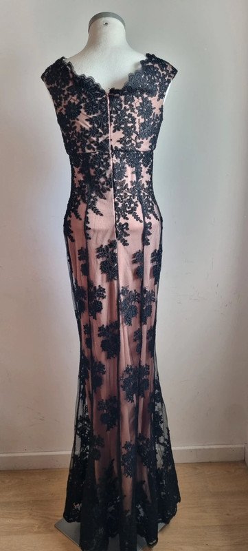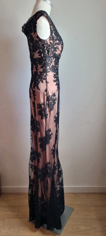 Robe longue rose et noire, taille 36, excellent état. Longueur : 150 cm Aisselle : 41 cm