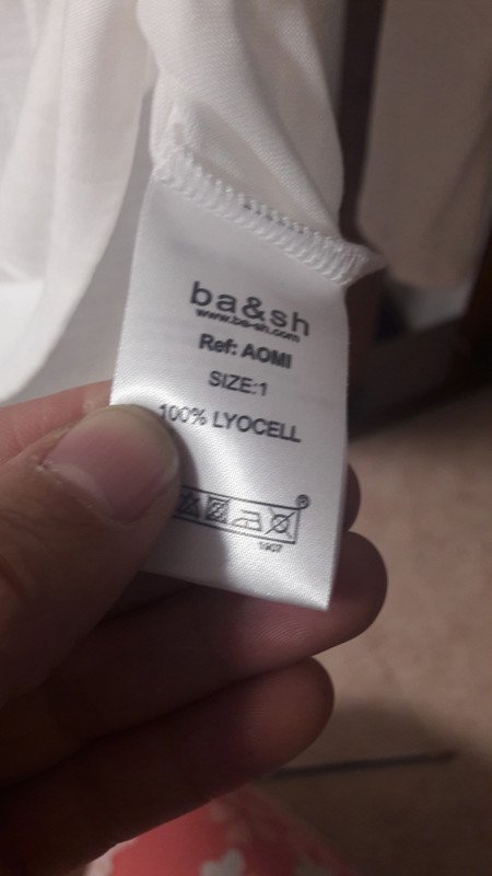 Tee-shirt manche longue Ba&sh modele  Aomi, taille 0. Decolleté en V au dos Liens au dos, couleur blanc. Excellent état, porté 1 fois.