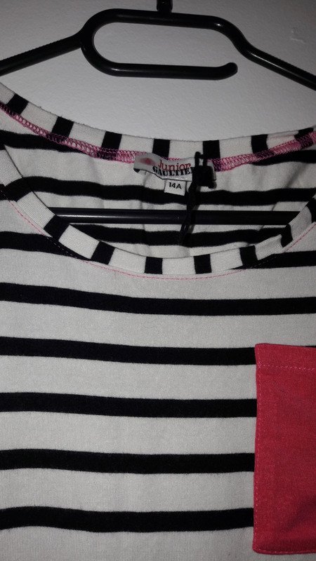 Tee shirt Jean Paul Gaultier rayé marin et rose en très bon état. Taille 14 ans.
