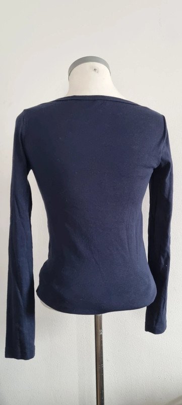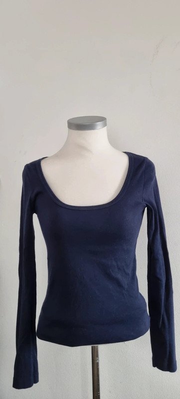 Tee shirt marine manches longues, légèrement décolleté, taille XS, en très bon état.