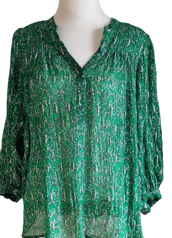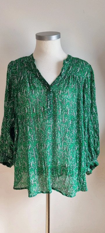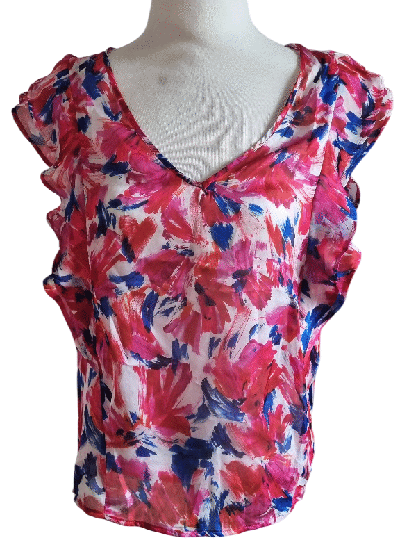 Tee-shirt en lin multicolore, col V, taille XS, en excellent état. Longueur 62 cm Épaules 38 cm Aisselle 42 cm