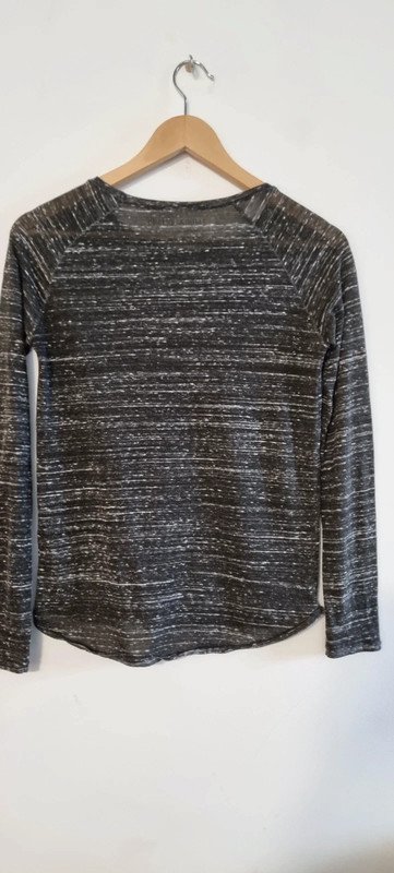 Tee shirt gris chiné noir, légèrement transparent, taille XS, en très bon état.