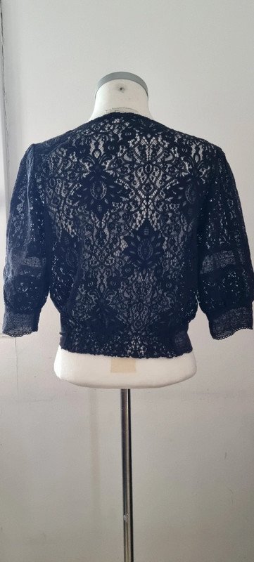 Top noir dentelle, manches 3/4, taille 0, en très bon état.