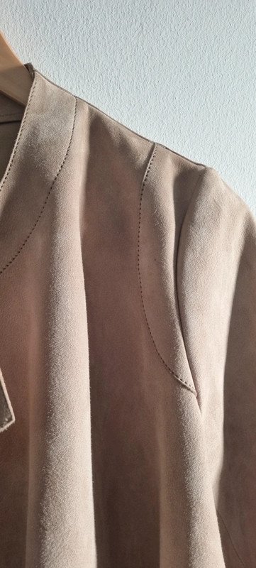 Veste en cuir de chèvre velours, beige, taille 40, en très bon état.