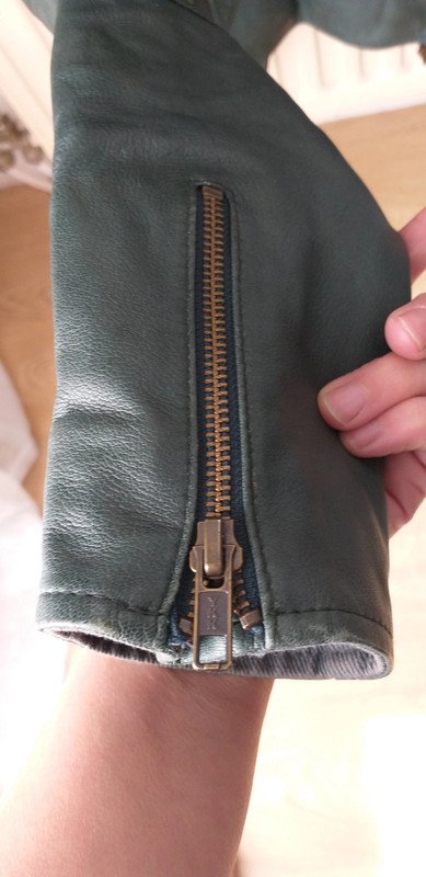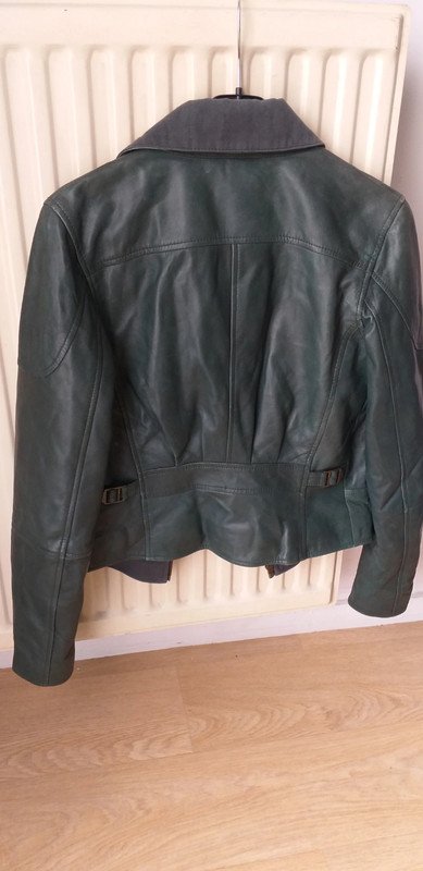 Lien Vinted : https://www.vinted.fr/items/870708035-veste-en-cuir-verte-hoss-intropia